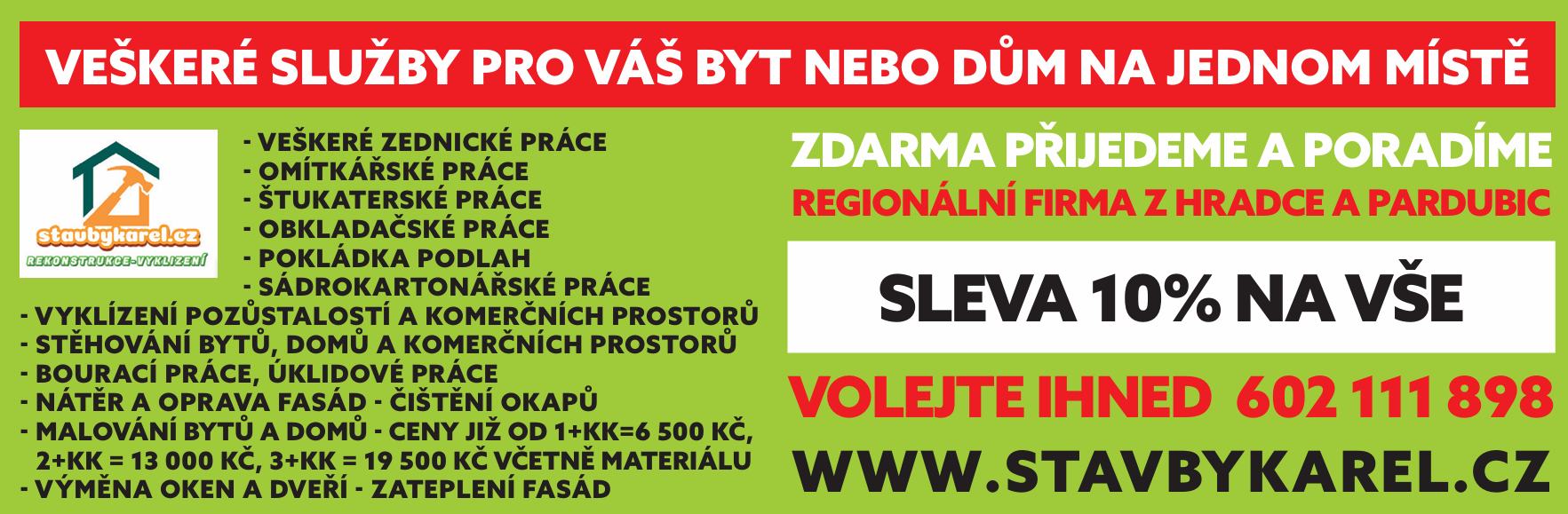 Stavíme a rekonstruujeme byty a domy v oblasti Pardubic a Hradce Králové. Naše služby zahrnují kompletní rekonstrukce interiéru i exteriéru, dalé nabízíme stěhovaní a vyklizení bytů,domů a komerčních prostorů